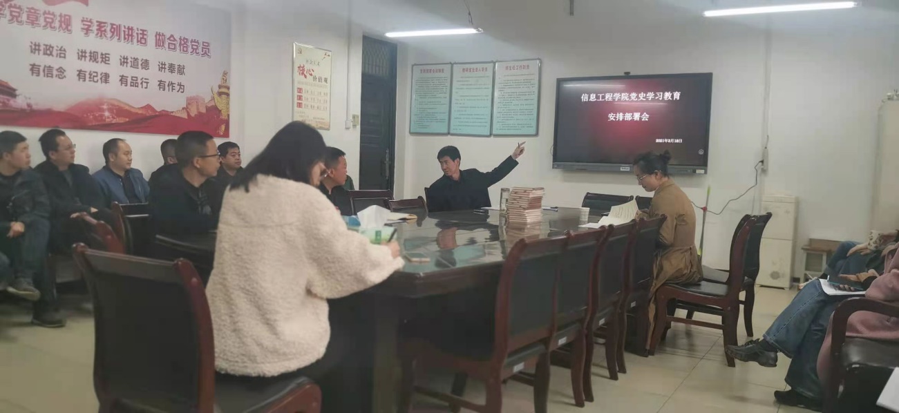 会上,信息工程公司党总支副书记宋珍对公司党史学习教育工作进行了具体安排部署。宋珍指出,全院师生要深刻认识到党史学习教育的重大意义。中国共产党领导全国人民走过的百年历程,是光荣辉煌的一百年,是艰苦卓绝的一百年,是奠基立业的一百年,也是开辟未来的一百年。在“两个一百年”奋斗目标历史交汇的关键点,开展全党党史学习教育正当其时,十分必要,我们要深刻认识组织开展党史学习教育的重大意义。随后,宋珍从把握目标要求、加强组织领导、做到精准精细、注重方式方法、加强宣传引导五个方面对公司党史学习教育进行详细部署。