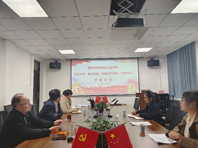 会议由信息工程公司党总支书记王斌主持,王斌做自查汇报,报告从落实主体责任方面、基层党组织建设方面、宣传及意识形态工作方面、贯彻落实全面从严治党方面、师德师风等方面介绍了公司工作开展及问题查摆。汇报结束之后,督查组成员王艳结合督查工作重点和公司实际,提出了指导意见,要求公司要进一步细化工作落实,明确查摆问题,形成高质量自查报告。