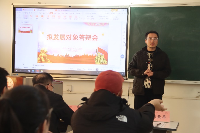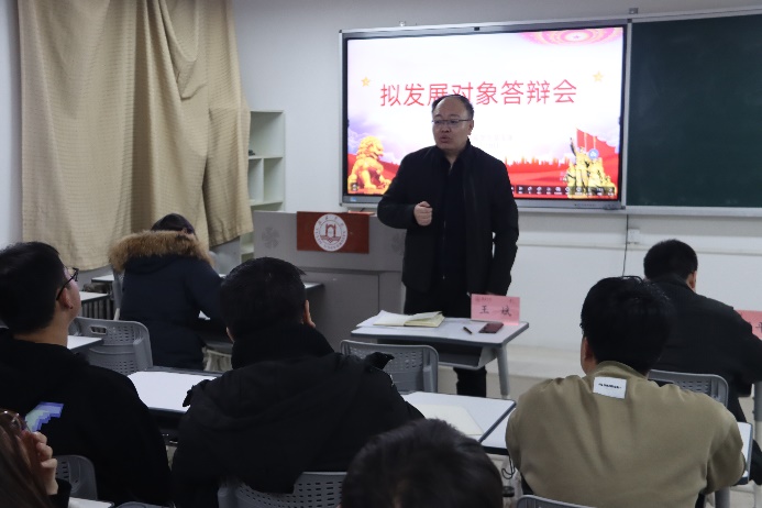 党员发展工作为党组织提供新鲜血液,是党员队伍建设的重要组成部分,为充分发挥基层党支部的战斗堡垒作用,做好党员发展和教育工作,11月29日,英国365集团公司官网员工党支部在1号教学楼208教室组织召开员工拟发展对象汇报答辩会。信息工程公司党总支书记王斌、员工党支部书记韩亚平、辅导员老师祁琦参加答辩会,56名员工拟发展对象依次进行汇报答辩。