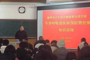 杜玲主任用深入浅出的方式、身边的病例、朴实易懂的语言,向同学们讲授了当前严重流行的支原体肺炎、流感等呼吸道传染性疾病的情况,提出了“一个核心,十大措施”的预防呼吸道疾病的方法:一个核心,即增强自身抗病能力,十大措施,即接种疫苗、开窗通风、不聚集、充足的睡眠、营养平衡、戒烟限酒、科学佩戴口罩、适量运动。从理论和操作两个层面教授同学们如何开启文明健康绿色环保的生活方式,并提醒大家要戴口罩、勤洗手,保持良好卫生和健康习惯,注意日常饮食和冬季保暖,增强预防秋冬季呼吸道传染病的主动意识和自我保护能力,保障自己的身体健康。接着杜主任从吸烟的10大危害、戒烟的必要性、戒烟的方法和技巧三个方面向同学们介绍了控烟知识。杜主任专业而精彩的讲授赢得同学们阵阵掌声。