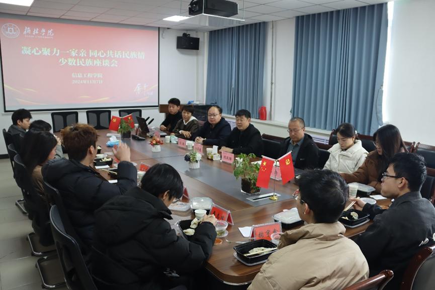 座谈会上,信息工程公司党总支书记王斌对各民族同学致以节日的问候,并介绍了传统节日立冬的来历及其蕴含的丰富意义。他传达了公司对各民族同学的关怀,鼓励少数民族同学们积极参与校园生活,不断促进民族文化融合,在相互交流、相互尊重、相互学习中共同成长,做中华文化的传承者,做民族团结的传播者。