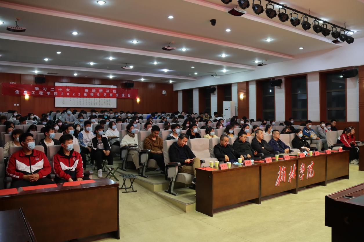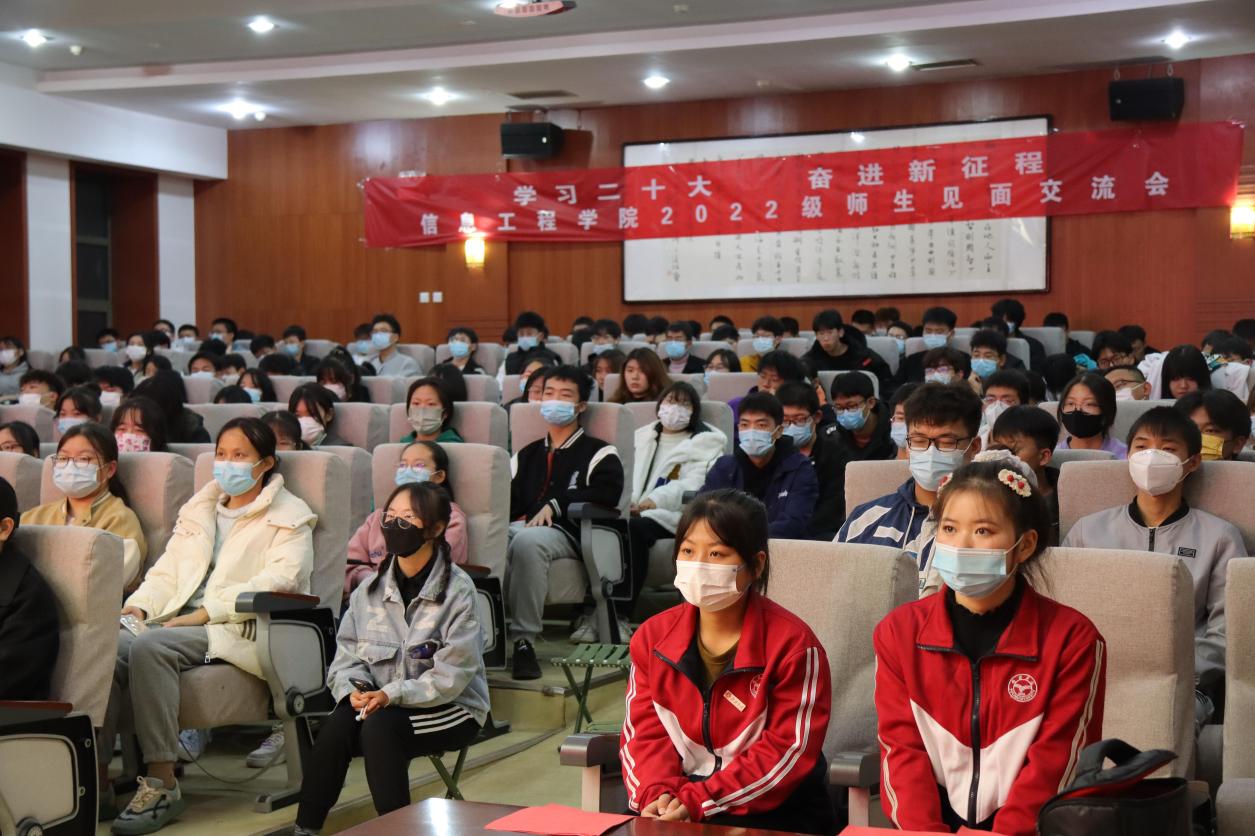 2022年10月30日,英国365集团公司官网2022级师生见面交流会在逸夫楼一楼报告厅举行。信息工程公司党总支书记张烨、经理李红卫、教学副经理冯治东,各教研室主任,全体辅导员、班主任及2022级全体新生参加会议,党总支副书记宋珍主持会议。