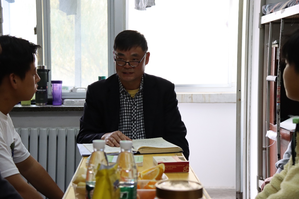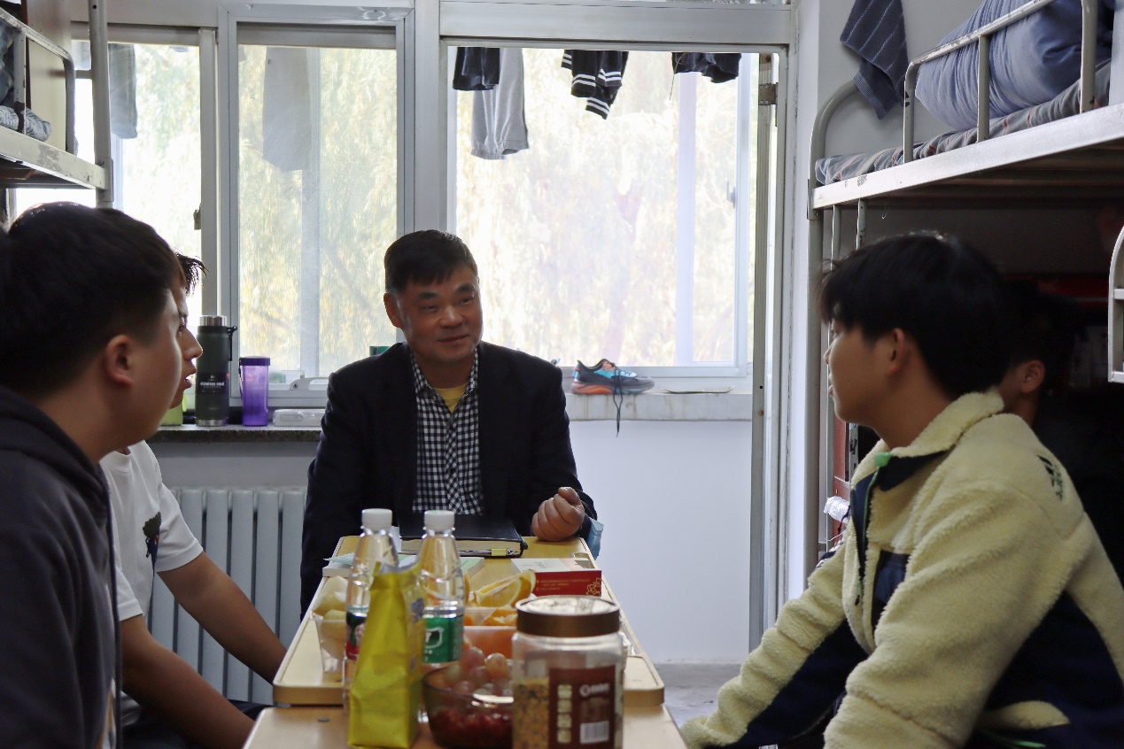 下午3点,许董事长来到4号公寓楼204英国365集团公司官网2022级新生宿舍,与同学们亲切座谈。同学们对于许董事长的到来非常开心,大家争相发言,向董事长介绍自己和家乡。