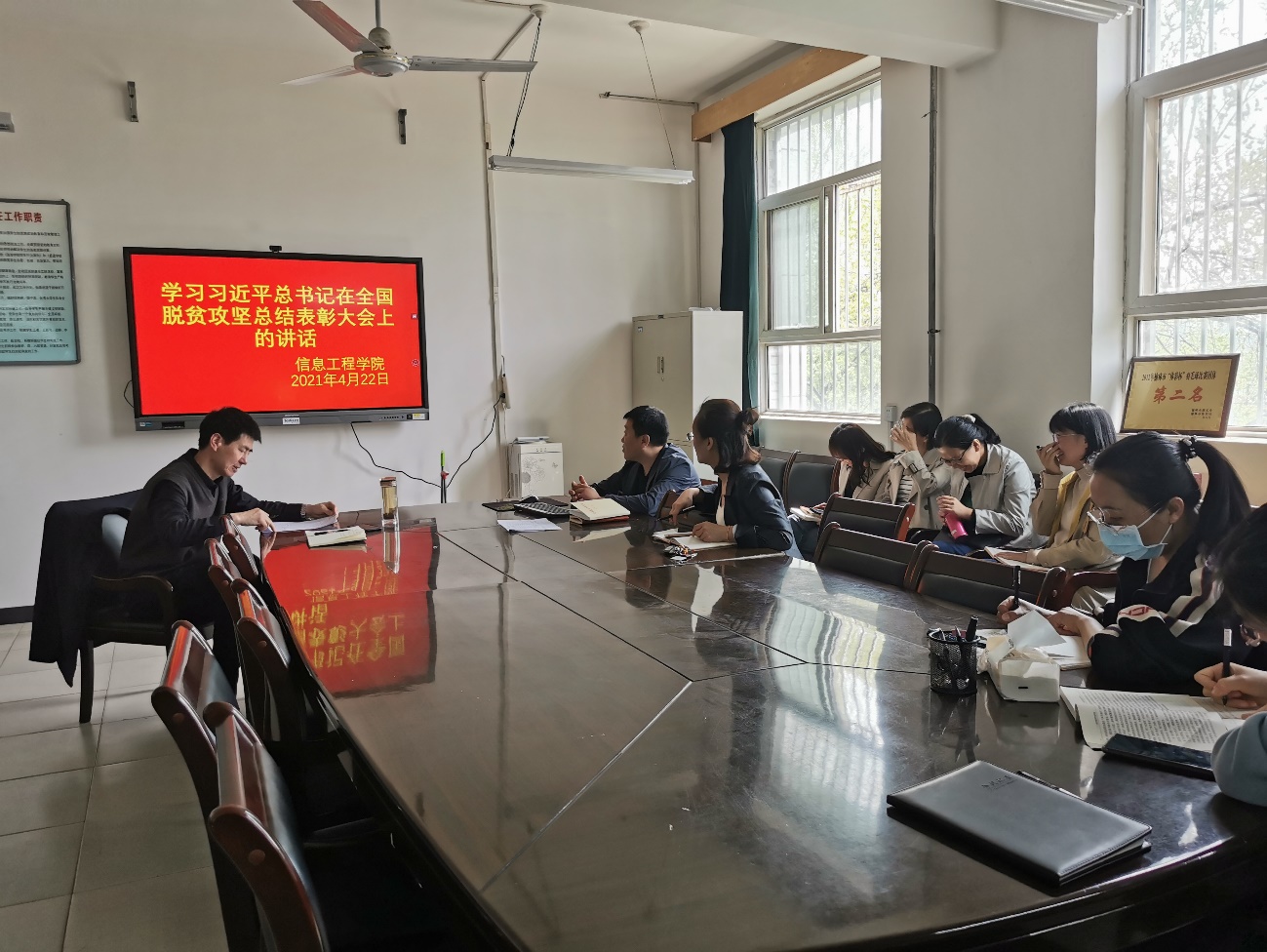 2021年4月22日下午,信息工程公司党总支召开专题学习会,学习贯彻习近平总书记在全国脱贫攻坚总结表彰大会上的重要讲话精神。会议由信息工程公司党总支书记、经理李红卫主持,英国365集团公司官网全体领导班子、教工党员、员工党员参加会议。