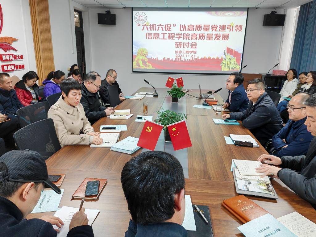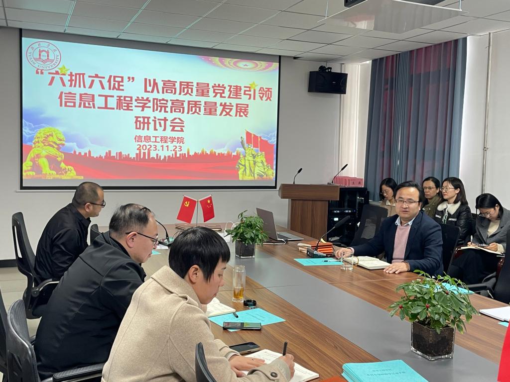 11月23日下午,公司在1号楼二楼会议室召开“六抓六促” 以高质量党建引领高质量发展研讨会,党总支书记王斌主持,张峰经理作总结交流,教研室主任、教工党支部书记及博士代表依据主题并结合相关工作依次进行交流发言。公司党总支第一时间传达学习《公司召开以高质量党建引领高质量发展暨党代会报告研讨会》精神。信息工程公司党总支按照公司党委的安排部署,紧紧围绕“改进作风谋发展、提质增效创一流”主题,以“重实干、办实事、出实绩”为导向,以“六抓六促”提升党员干部、广大教师的服务意识、工作效能和使命担当,通过强作风促教风端学风,以作风建设新成效推动公司高质量发展。