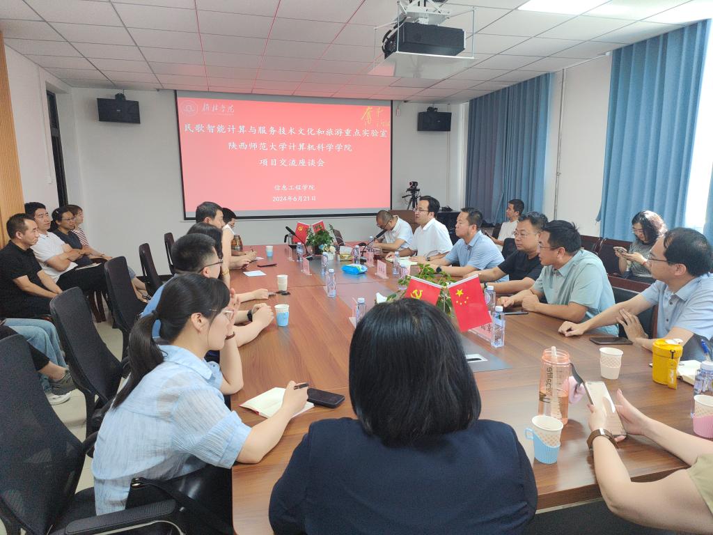 6月21日下午,公司邀请陕西师范大学民歌智能计算与服务技术文化和旅游部重点实验室吴晓军主任、张玉梅副主任,陕西师范大学计算机科学公司副经理李鹏教授一行4人在1号教学楼201会议室就非物质文化遗产数字化传播研究、陕北民歌数字化基地建设等方面进行了学术交流座谈。公司艺术公司、文公司、科研处、评建办、学报编辑部、公司教授、博士、硕士研究生导师等参与座谈交流。座谈会由公司经理张峰教授主持。