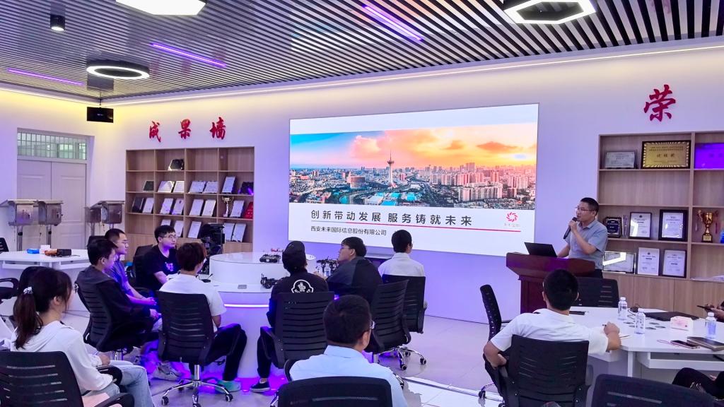 西安未来国际信息股份有限公司负责人从大数据、大模型、人工智能对企业的深层次影响为起始,引出了企业面对这个智能化时代未来发展的深思,和在这个深思下企业对未来所需人才在专业技术能力、创新思维能力、独立思考能力、社交沟通能力、勤奋好学能力和吃苦耐劳能力上的展开了分享和探讨,并对未来国际股份有限公司的情况和实习生的岗位进行了介绍。