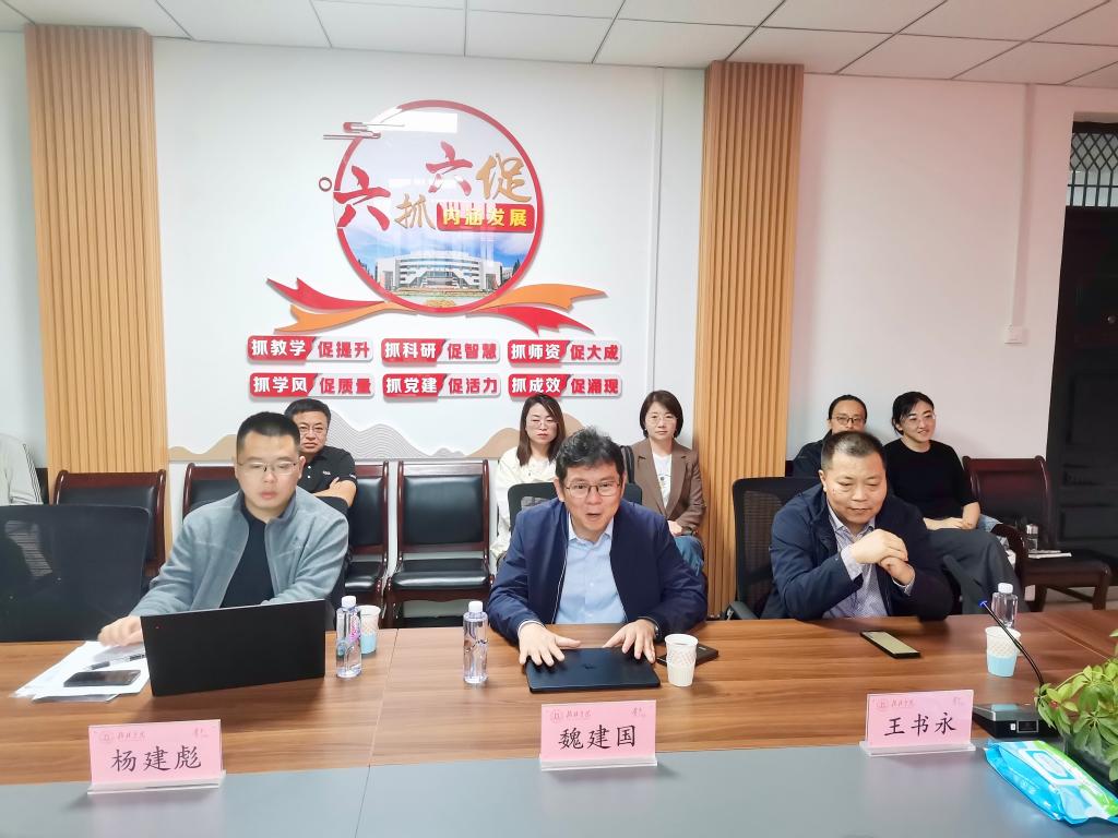 张峰首先代表公司对魏建国教授的莅临指导表示欢迎和感谢,希望公司教师以此次交流为契机,把握形势、积极申报、认真准备,要结合专家建议,精打细磨,认真总结凝练,提高申报书的质量,力争实现公司国家自然科学基金项目和国家教学成果奖新突破。