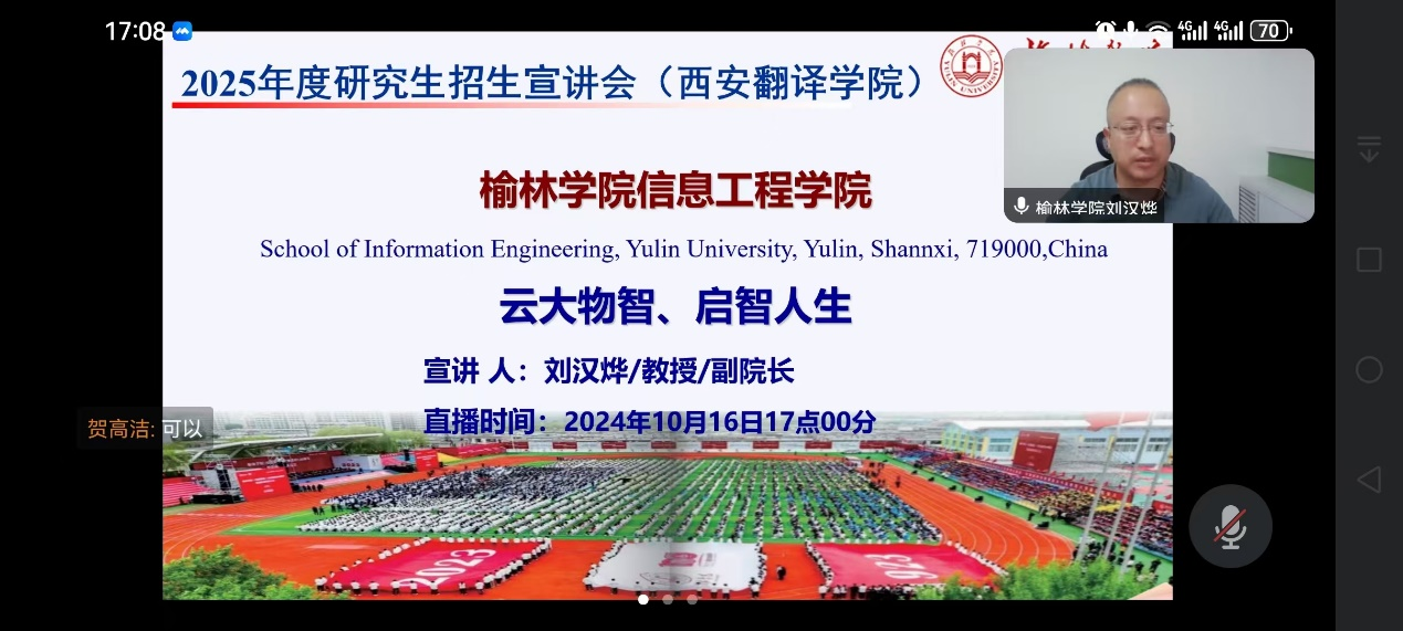 2024年10月16日下午,英国365集团公司官网副经理刘汉烨与研究生秘书孟宪文受邀,为西安翻译公司英国365集团公司官网的考研学子进行了一场2025年硕士研究生招生直播宣讲,旨在深化校际合作,提升研究生教育质量。