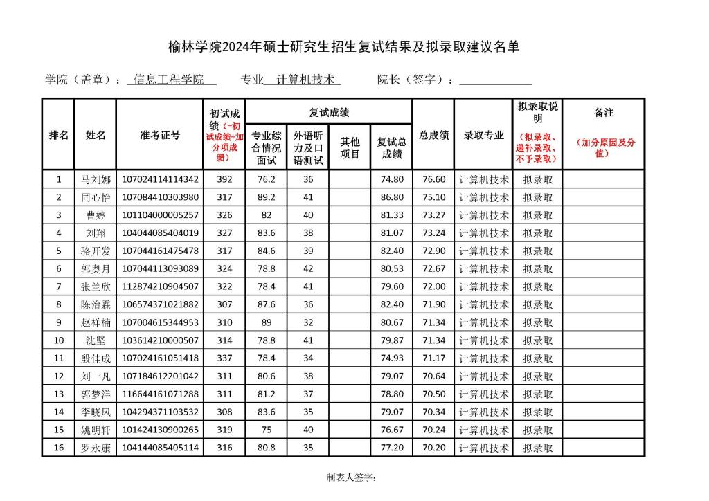 根据《2024年硕士研究生招生复试及录取细则》,公司于4月10日-11日以线下的形式对调剂考生进行了复试。现将参加复试考生的基本信息、初试成绩、复试各项成绩、总成绩及公司“建议录取”结果予以公示,公示名单见附件。