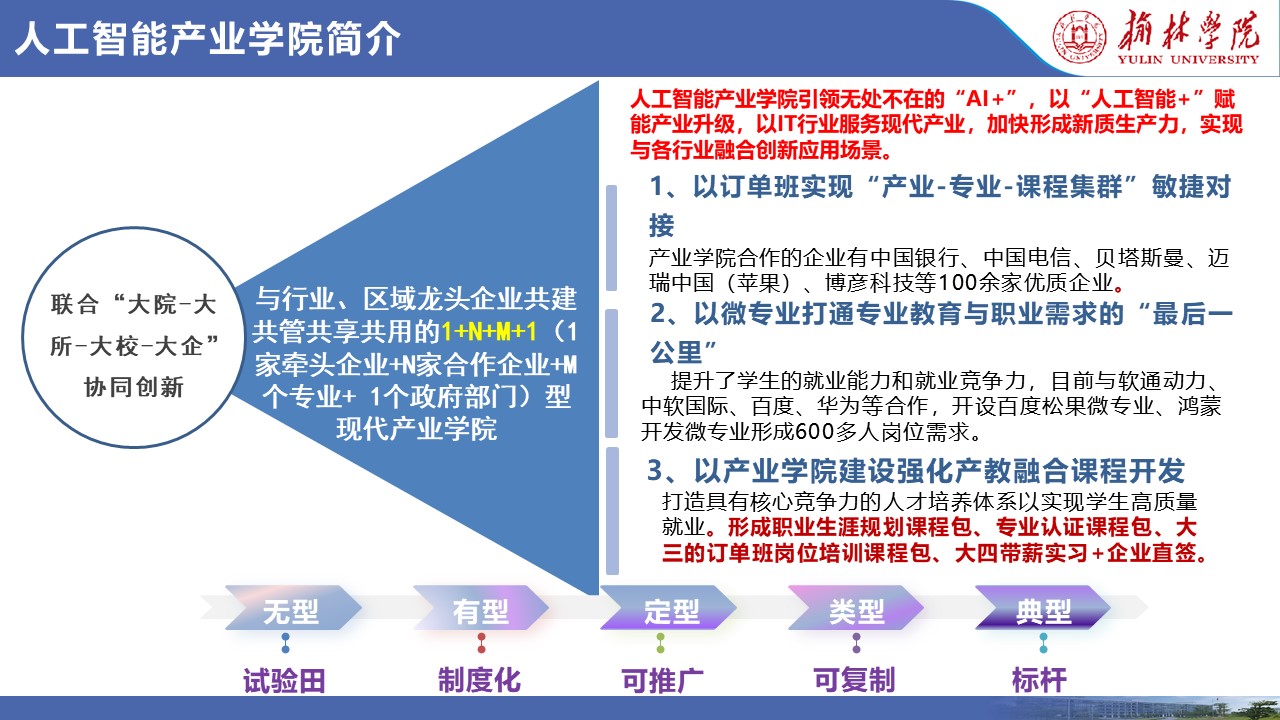 英国365集团公司官网是公司在调研华为、百度、科大讯飞、中煤陕西能源化工集团有限公司、陕西华电榆横煤电有限责任公司自、然资源部陕西基础地理信息中心、西安文理公司数字产业公司、东莞理工公司产业公司等30多家企业、高校运行经验的基础上,依托于微专业以及多个校企合作数字产业订单班,于2024年3月开始筹建。英国365集团公司官网是公司顺应科技进步和产业变革大趋势,联合“大院-大所-大校-大企”协同创新,与行业、区域龙头企业共建共管共享共用的1+N+M+1(1家牵头企业+N家合作企业+M个专业+ 1个政府部门)型现代产业公司,采用四层次课程包的方式把产教融合课程、项目化课程嵌入人才培养方案以及开办订单班和微专业的形式开展产业公司建设,以就业数据分析、测试类等通用技能岗位和IT行业售前、售后等服务类岗位进行分层次、差异化、应用型(与双一流高校区分)培养,是公司推动人才培养模式深层次变革的重大举措。